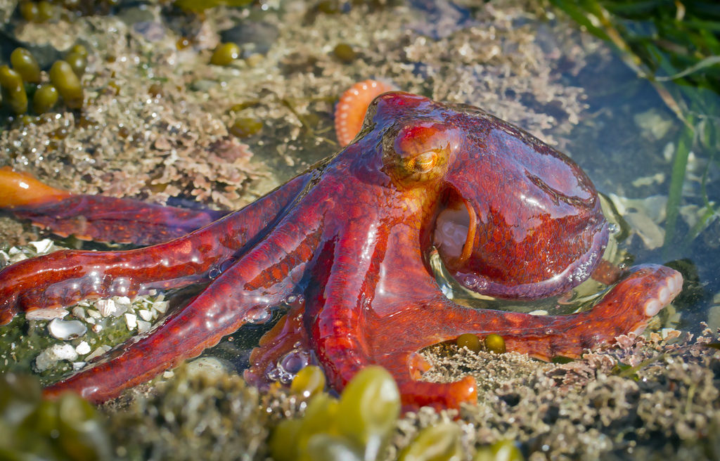 El pulpo rojo del Pacífico Oriental (Octopus rubescens) presenta una coloración roja; sin embargo, dependiendo de las necesidades que tenga para enfrentarse al medio, puede cambiar a tonos como amarillos, marrones o blancos. En algunas ocasiones incluso es capaz de cambiar la textura de la piel